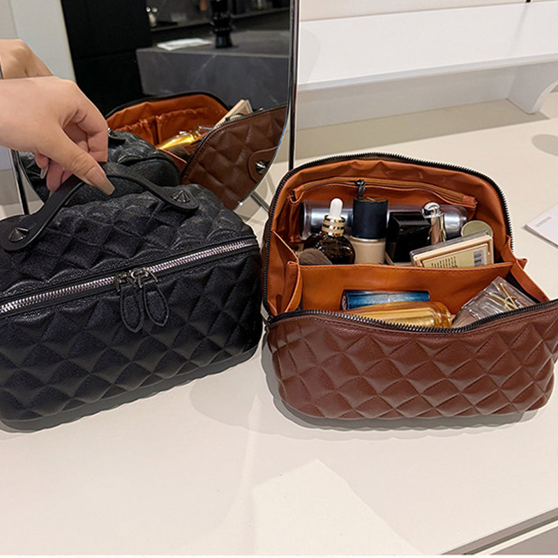 Tartós PU bőr külső rész- Vízálló, könnyen tisztítható és tartós anyagból készült, prémium minőségű érzetet kelt. Hatékonyan védi értékes kozmetikumait a fröccsenésektől és a sérülésektől utazás vagy mindennapi használat közben.