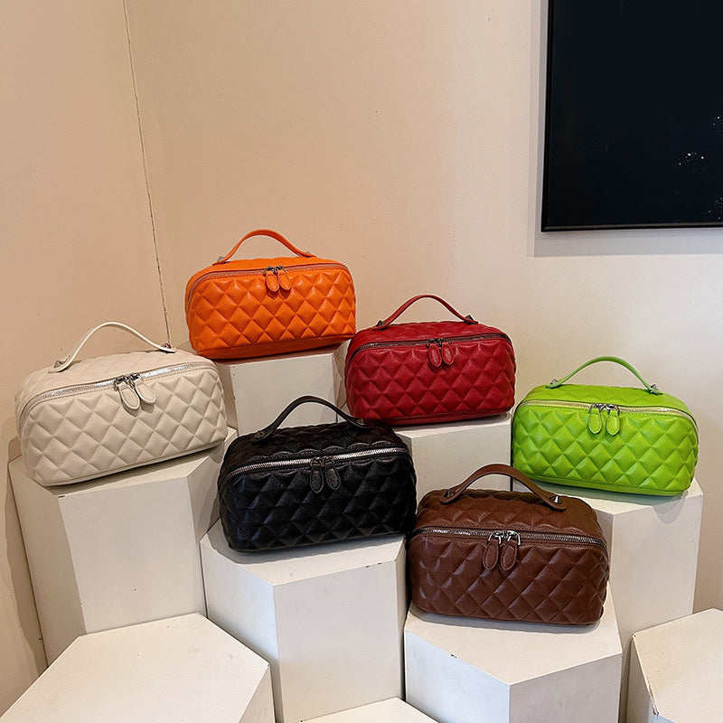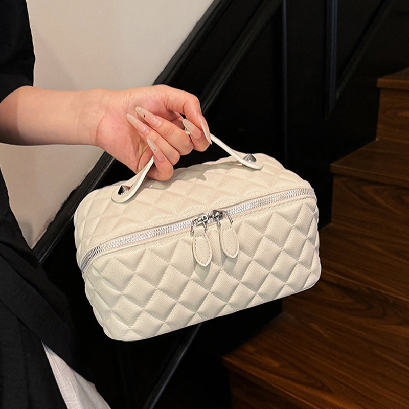 A csomag tartalma: 1 db női, steppelt, nagy kapacitású utazási pipere táska